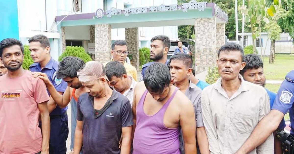 গ্রেফতারকৃতরা হলেন- ডাকাত দলের প্রধান দেবিদ্বার থানার নবীয়াবাদ এলাকার শাহ আলম দুলাল (৪৮), মুরাদনগর থানার উড়িরচর এলাকার মো. মনির হোসেন (৪০), ব্রাহ্মণপাড়া থানার মো. মামুন মিয়া (২৪), একই থানার মাহবুব আলম (৩৮), সদর দক্ষিণ থানার বিজয়পুরের আলমগীর হোসেন (৩০), বুড়িচং থানার জুরাইন মাইকপাড়ার মো. আল আমিন (৩২), বরুড়া থানার মহেশপুরের কাজী বাড়ির মো. কামাল হোসেন (৩২), চান্দিনা থানার মোশারফ শরীফ (৩২), একই থানার মো. সুমন (৩৩), বরুড়া থানার বাশতলী নোয়াবাড়ীর মো. খোকন (৪০), একই থানার দক্ষিণ হোসেনপুরের আল আমিন (২৫), চান্দিনা থানার চিরাল্লা এলাকার মো. সোহেল (২৬), বাঙ্গরাবাজার থানার হিরাকাশীর মো. আব্দুল আউয়াল (৫০) ও চাঁদপুরের মতলব উত্তর থানার সন্তোপুরের নিহার বিশ্বাস (৪৮)।