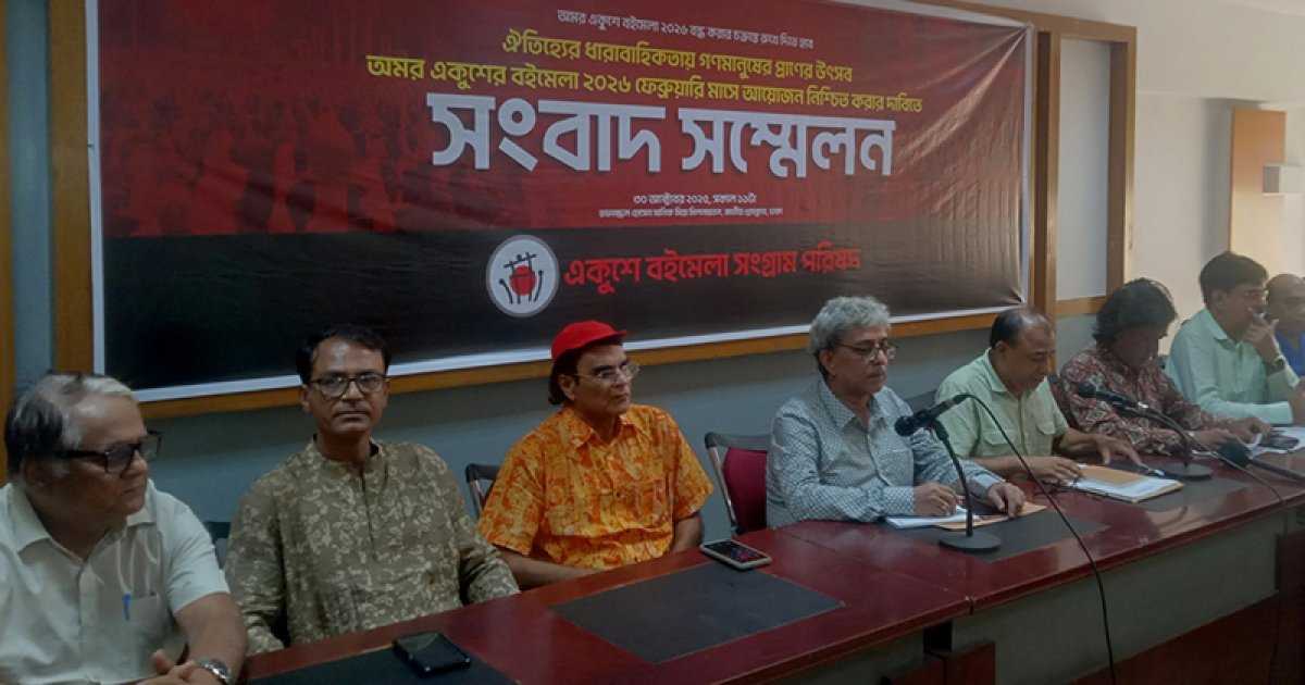 বাংলাদেশ পুস্তক প্রকাশক ও বিক্রেতা সমিতির পরিচালক মণ্ডলীর অন্যতম সদস্য ও মেলা উদযাপন কমিটির আহ্বায়ক আবুল বাশার ফিরোজ শেখের সভাপতিত্বে সংবাদ সম্মেলনে আরও ছিলেন– গণতান্ত্রিক সাংস্কৃতিক ঐক্যের সাধারণ সম্পাদক জামশেদ আনোয়ার তপন, চারণ সাংস্কৃতিক কেন্দ্রের সহসভাপতি কবি কামরুজ্জামান এবং একুশে বইমেলা সংগ্রাম পরিষদের যুগ্ম আহ্বায়ক মফিজুর রহমান প্রমুখ।