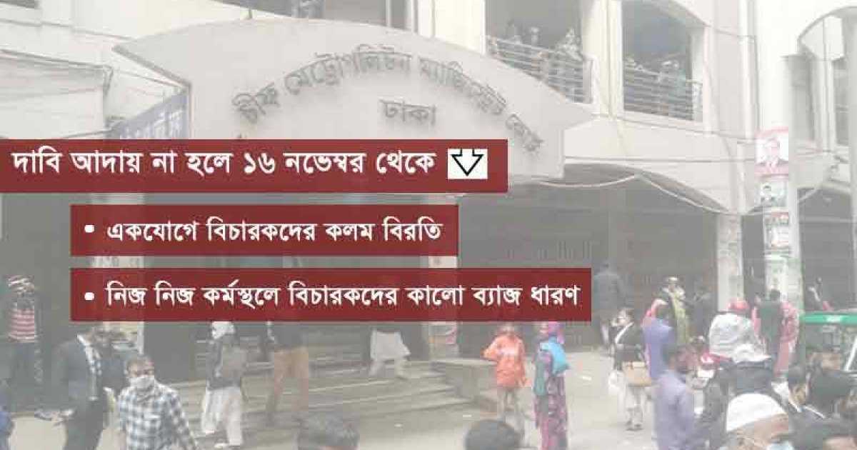 বিবৃতিতে আল্টিমেটাম দিয়ে বলা হয়েছে—আগামী ৪৮ ঘণ্টার মধ্যে এই দাবি বাস্তবায়নপূর্বক বিচারকদের কর্মের পরিবেশ ও সার্বিক নিরাপত্তা নিশ্চিত করা না হলে আগামী রবিবার (১৬ নভেম্বর) থেকে সারা দেশের বিচারকরা একযোগে কলম বিরতি পালন করবেন। সেইসঙ্গে বিচারক পরিবারের নিহত সদস্যের প্রতি শ্রদ্ধা জানিয়ে দেশের সব বিচারক নিজ নিজ কর্মস্থলে আগামী রবিবার (১৬ নভেম্বর) কালো ব্যাজ ধারণ করবেন।