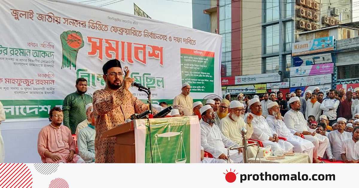 আজ শুক্রবার বিকেলে খুলনা নগরের ডাকবাংলা সোনালী ব্যাংক চত্বরে জুলাই সনদের ভিত্তিতে ফেব্রুয়ারিতে নির্বাচনসহ ৫ দফা দাবিতে জামায়াতে ইসলামী আয়োজিত সমাবেশে প্রধান অতিথির বক্তৃতায় তিনি এ কথা বলেন।