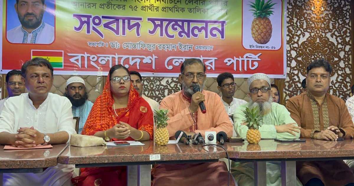 ত্রয়োদশ জাতীয় সংসদ নির্বাচনে নিজেদের ৭৫ জনের প্রাথমিক প্রার্থী তালিকা প্রকাশ করেছে বাংলাদেশ লেবার পার্টি। শুক্রবার (৩১ অক্টোবে) রাজধানীর পুরানা পল্টনের একটি রেস্টুরেন্টে সংবাদ সম্মেলনে প্রথম পর্বের প্রার্থীদের নাম ঘোষণা করেন দলের চেয়ারম্যান ডা. মোস্তাফিজুর রহমান ইরান।
