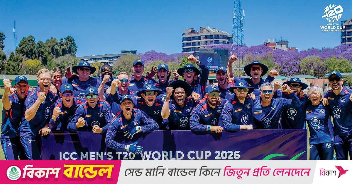 ১৬তম দল হিসেবে ২০২৬ টি-টোয়েন্টি বিশ্বকাপে জায়গা করে নিয়েছে নামিবিয়া। আজ আফ্রিকার আঞ্চলিক বাছাইয়ে সেমিফাইনালে তানজানিয়াকে হারিয়ে ফাইনালে উঠে টানা চতুর্থ টি-টোয়েন্টি বিশ্বকাপ খেলা নিশ্চিত করেছে দলটি।