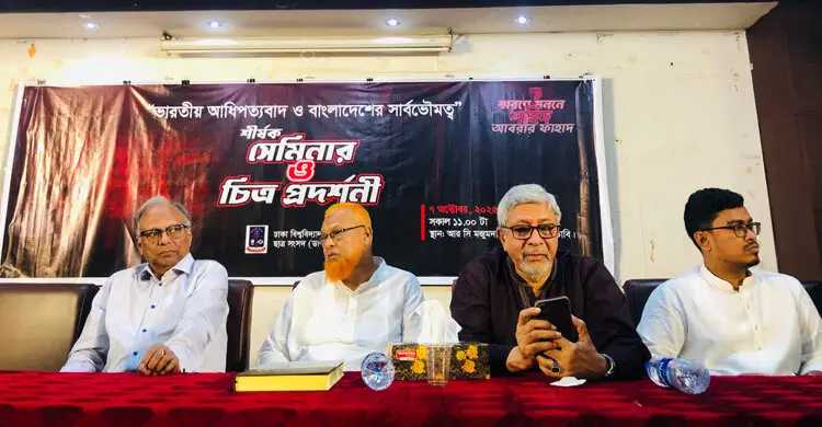 মঙ্গলবার (৭ অক্টোবর) বেলা ১১টায় ঢাকা বিশ্ববিদ্যালয়ের (ঢাবি) আর সি মজুমদার অডিটোরিয়ামে ‘ভারতীয় আধিপত্যবাদ ও বাংলাদেশের সার্বভৌমত্ব: স্মরণে শহীদ আবরার ফাহাদ’ শীর্ষক সেমিনার ও ‘স্মরণে মননে শহীদ আবরার ফাহাদ’ চিত্র প্রদর্শনীর উদ্বোধনী অনুষ্ঠানে প্রধান অতিথির বক্তব্যে তিনি এ কথা বলেন।