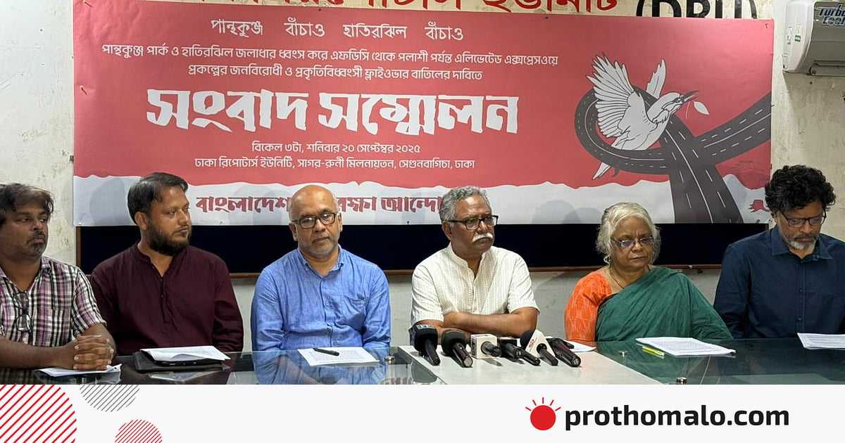 পান্থকুঞ্জ পার্ক ও হাতিরঝিল জলাধার ধ্বংস করে এলিভেটেড এক্সপ্রেসওয়ে প্রকল্পের জনবিরোধী ও প্রকৃতি ধ্বংসকারী উড়ালসড়ক বাতিলের দাবিতে আয়োজিত সংবাদ সম্মেলনে বক্তারা এ কথাগুলো বলেন। আজ শনিবার বিকেলে ঢাকা রিপোর্টার্স ইউনিটি (ডিআরইউ) মিলনায়তনে বাংলাদেশ গাছ রক্ষা আন্দোলন এ সংবাদ সম্মেলনের আয়োজন করে।