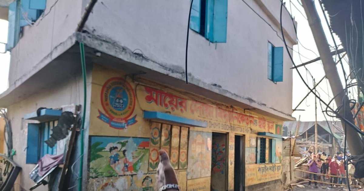 রাজধানীর কড়াইল বস্তিতে থাকা একটি বিদ্যালয়ের ভবন আগুনে ক্ষতিগ্রস্ত হয়েছে। তিনতলা ভবনের উপরের অংশ আগুনে পুড়ে চারপাশের দেয়ালে ফাটল ধরেছে। এজন্য ওই অংশটুকু ভেঙে ফেলা হচ্ছে।