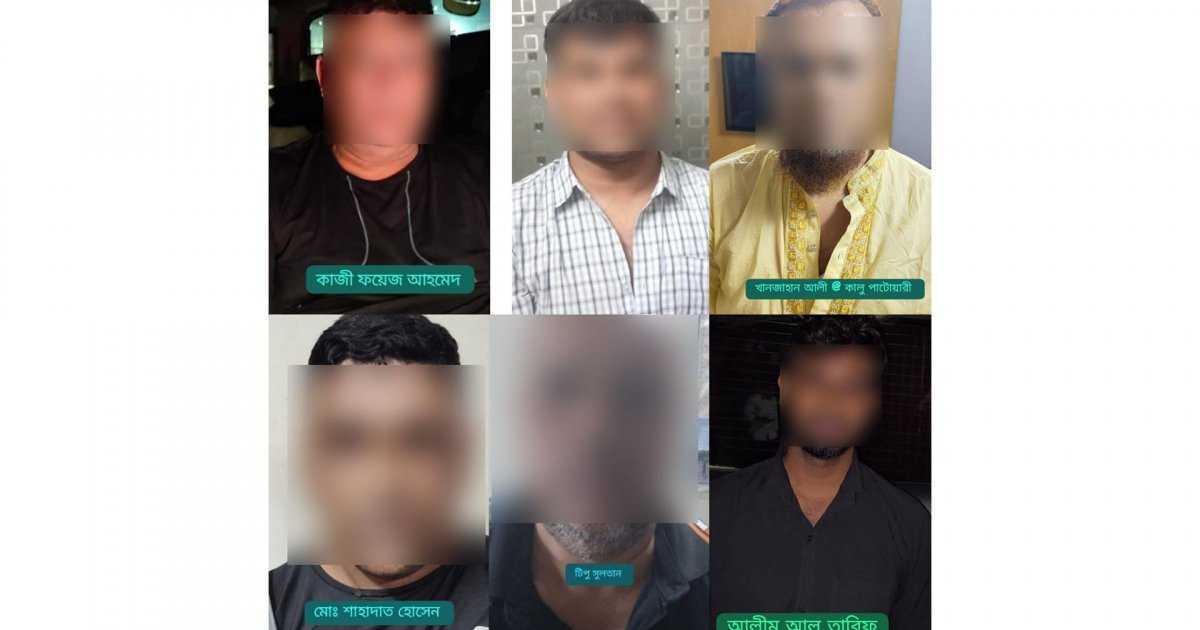 গ্রেফতারকৃতরা হলেন— মৎস্যজীবী লীগ কেন্দ্রীয় কার্যনির্বাহী কমিটির সদস্য ও মহানগর উত্তর আওয়ামী যুবলীগের ২৭ নং ওয়ার্ডের ক্রীড়া সম্পাদক মো. শাহাদাত হোসেন (৪৪), চাঁদপুর সদরের চান্দ্রা ইউনিয়ন পরিষদের তিন বারের চেয়ারম্যান মো. খান জাহান আলী ওরফে কালু পাটোয়ারী (৫৫), ছাত্রলীগ কেন্দ্রীয় কমিটির সহ-সম্পাদক ও জগন্নাথ বিশ্ববিদ্যালয় ছাত্রলীগের সাবেক সহ-সভাপতি মো. মশিউর রহমান (৩২), খুলনা জেলার খালিশপুর থানা আওয়ামী লীগের সহ-সভাপতি কাজী ফয়েজ আহমেদ (৫২), ঢাকা মহানগর দক্ষিণের উপ-গ্রন্থাগার ও প্রকাশনা বিষয়ক সম্পাদক এবং মহানগর উত্তর ছাত্রলীগের কর্মসংস্থান বিষয়ক সম্পাদক আলিম আল তারিফ (২৮) ও আওয়ামী মৎস্যজীবী লীগ কেন্দ্রীয় কার্যনির্বাহী কমিটির সাবেক যুগ্ম-সাধারণ সম্পাদক মো. টিপু সুলতান (৪৫)।