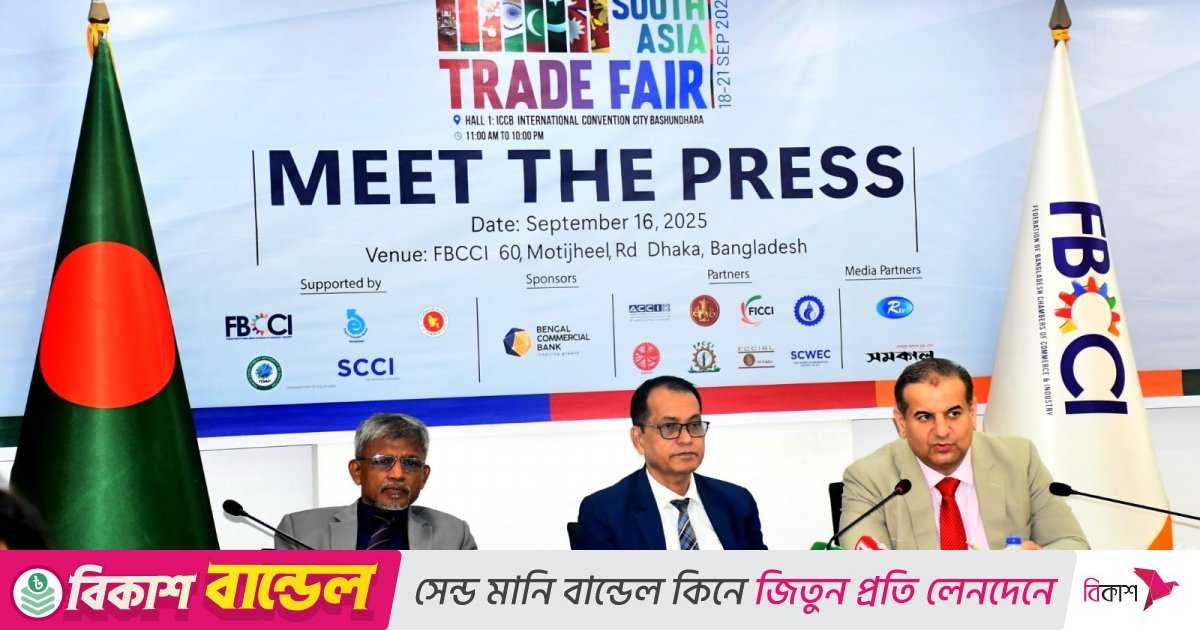 ঢাকায় শুরু হচ্ছে সাউথ এশিয়া ট্রেড ফেয়ার ২০২৫। সার্কভুক্ত দেশগুলোর অংশগ্রহণে আয়োজিত এ বাণিজ্য মেলায় তৈরি পোশাক ও বস্ত্র, জেমস ও জুয়েলারি, কসমেটিকস, চামড়াজাত পণ্য, হোম অ্যাপ্লায়েন্স, কিচেনওয়্যার, প্রক্রিয়াজাত খাদ্য, ইলেকট্রনিক্সসহ নানাবিধ পণ্য প্রদর্শিত হবে। দক্ষিণ এশিয়ার দেশগুলোর শতাধিক প্রতিষ্ঠান তাদের পণ্য ও সেবা নিয়ে মেলায় অংশ নিচ্ছে।
