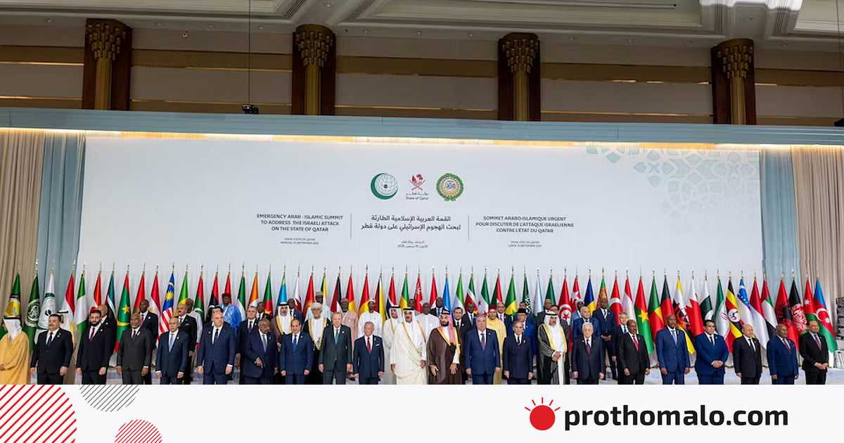 কাতারে হামাস নেতাদের ওপর ইসরায়েলের হামলার পর সোমবার দেশটির রাজধানী দোহায় আরব ও মুসলিম দেশগুলোর শীর্ষ নেতারা এক জরুরি শীর্ষ সম্মেলনে বসেন। সম্মেলন শেষে তাঁরা ইসরায়েলের সঙ্গে সম্পর্ক পুনর্বিবেচনার আহ্বান জানান।