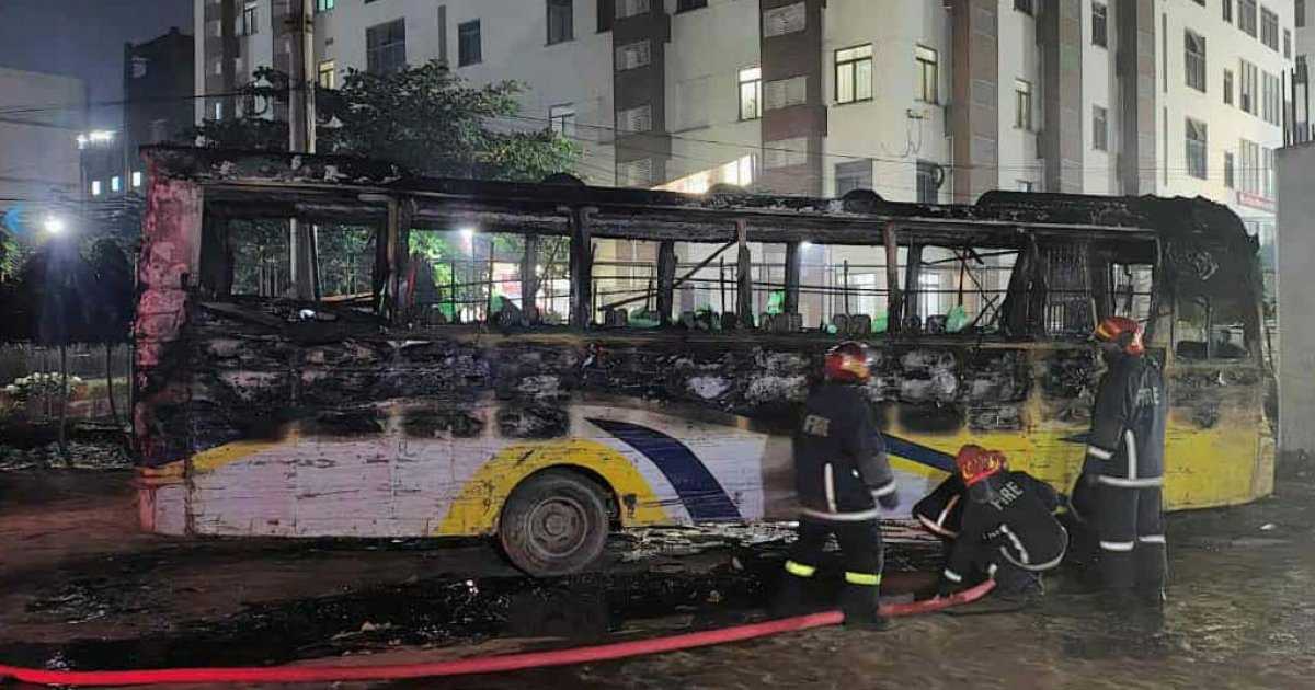 ফায়ার সার্ভিস ও স্থানীয়রা জানায়, ভোর পৌনে ৫টার দিকে একটি মোটরসাইকেলে দুজন এসে বাসে আগুন ধরিয়ে দিয়ে পালিয়ে যায়। পরে স্থানীয়রা ফায়ার সার্ভিসকে ফোন দিলে তারা এসে আগুন নেভান। ততক্ষণে বাসের ভেতরের সবকিছু পুড়ে যায়।