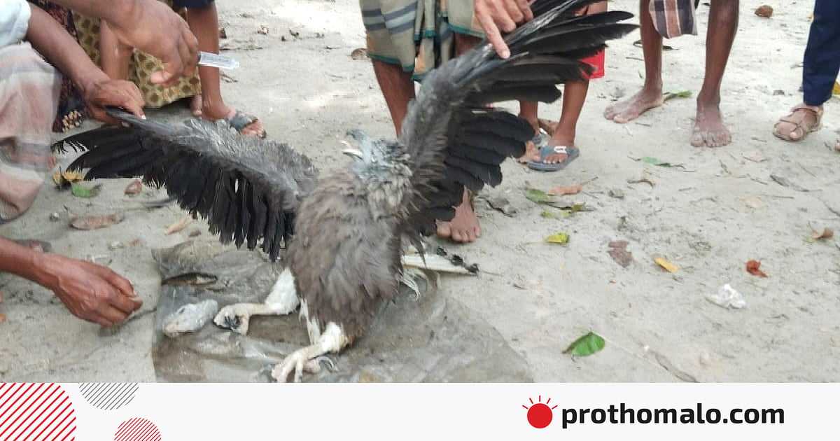 প্রত্যক্ষদর্শীরা জানান, সকাল সাড়ে ১০টার দিকে দুটি ইগল আকাশে লড়াই করতে করতে মাটিতে পড়ে যায়। কিছুক্ষণ পর একটি উড়ে গেলেও আরেকটি আহত অবস্থায় মাটিতেই পড়ে থাকে। ভয়ে তাঁরা কেউ উদ্ধার করেননি। তবে দুপুর সাড়ে ১২টার দিকে বাবু হোসেন সাহস করে সেটি উদ্ধার করেন।