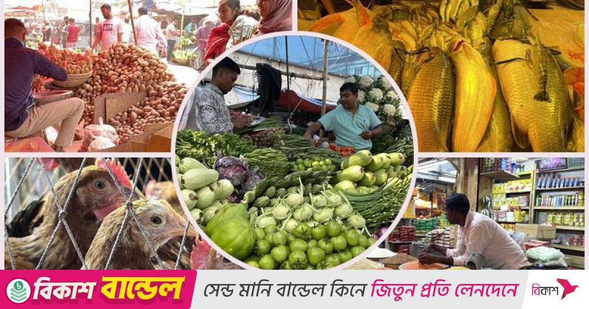 অপরদিকে, এক বছর পরে এসে ২০২৫ সালের ১৫ সেপ্টেম্বরে দেশের বাজারে মোটা চালের কেজি ৬০ থেকে ৬২ টাকা। আটার কেজি ৫০ থেকে ৫৪ টাকা। খোলা সয়াবিন তেলের কেজি ১৭৬ থেকে ১৭৮ টাকা। পাম সুপার বলতে বাজারে কোনও তেল নেই; সবই সয়াবিন নামে বিক্রি হচ্ছে। বড় দানার মসুর ডাল ১২০ থেকে ১৩৫ টাকা। দেশি পেঁয়াজের কেজি ৭০ থেকে ৮০ টাকা। প্রতিকেজি চিনির দাম বর্তমানে ১৬০ থেকে ১৭০ টাকা। আলুর কেজি ৩০ থেকে ৩৫ টাকা। তবে খোলা ভ্যানে ২৫ টাকা কেজি দরে আলু বিক্রি করতে দেখা গেছে।