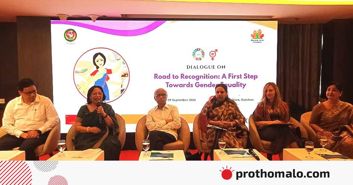 ‘রোড টু রিকগনিশন: আ ফার্স্ট স্টেপ টুয়ার্ডস জেন্ডার ইকুয়ালিটি’ শীর্ষক সংলাপে প্রধান অতিথির বক্তব্যে এসব কথা বলেন ওয়াহিদউদ্দিন মাহমুদ। আজ সোমবার সকালে রাজধানীর গুলশানের একটি হোটেলে এ সংলাপের আয়োজন করে বেসরকারি সংস্থা মানুষের জন্য ফাউন্ডেশন।