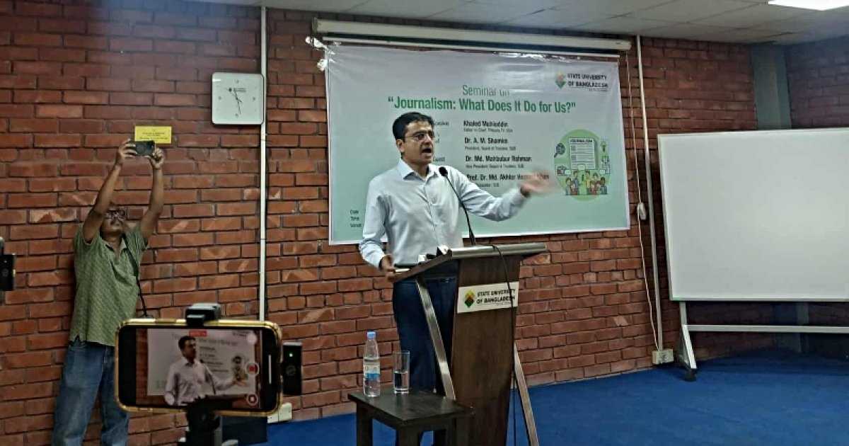 মঙ্গলবার (২৮ অক্টোবর) রাজধানীর স্টেট ইউনির্ভাসিটিতে “সাংবাদিকতা: আমাদের জন্য কী করে?” শীর্ষক এক সেমিনারে এসব কথা বলেন তিনি।