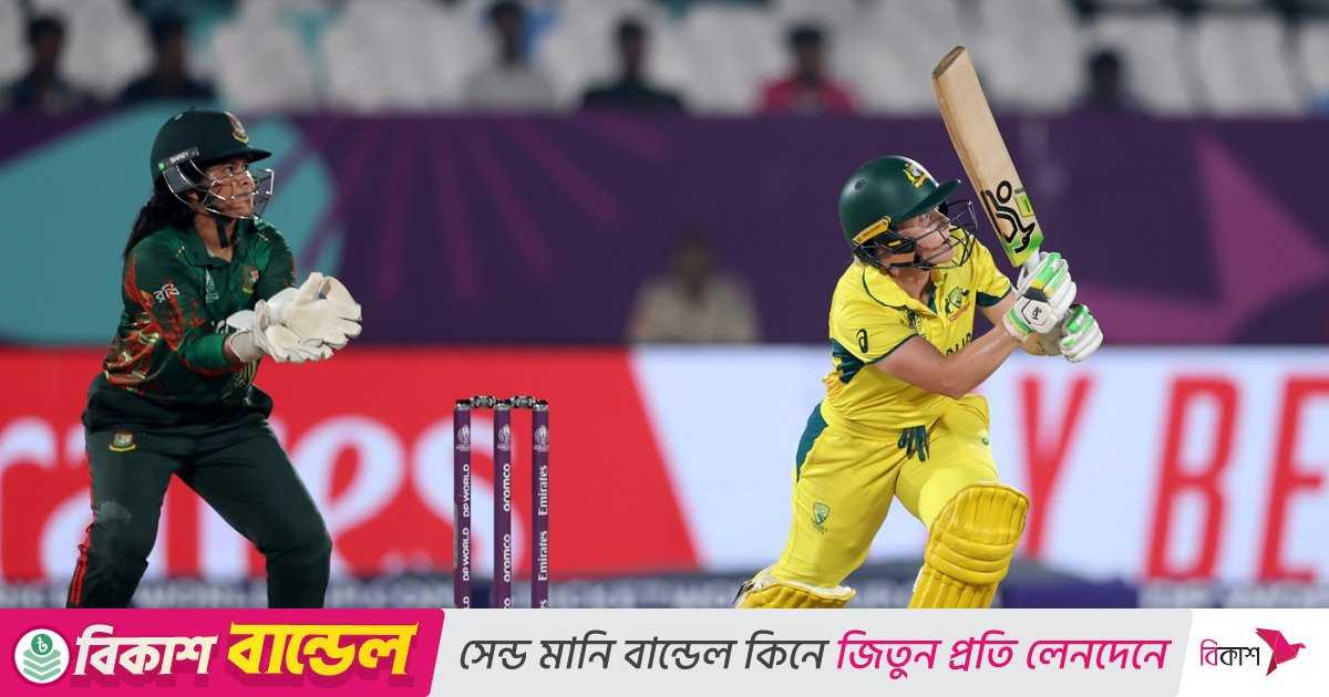 নিগার সুলতানা জ্যোতির দল অবশ্য অস্ট্রেলিয়ার স্পিন আক্রমণের বিপরীতে গতি হারিয়ে ফেলে। ১৮ রানে দুই উইকেট অ্যালানা কিং ও জর্জিয়া ওয়্যারহ্যামও ২২ রানে নেন দুটি। অ্যাশলে গার্ডনার ও অ্যানাবেল সাদারল্যান্ডও দুটি করে উইকেট শিকার করেন। তারা কিছুটা ব্যয়বহুল ছিলেন। মেগান শাট নেন একটি।