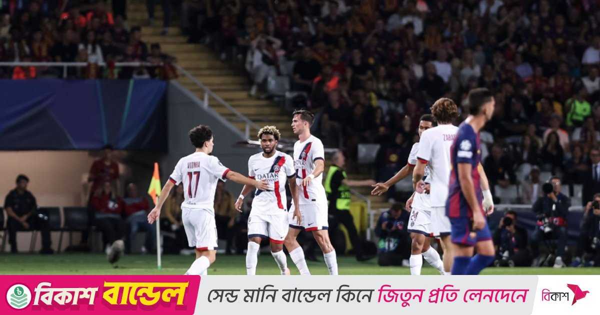 দ্বিতীয়ার্ধে দু’দলই গোলের জন্য মরিয়া হয়ে ওঠে। লামিনে ইয়ামাল শুরুতে দারুণ চাপ তৈরি করলেও গোলের দেখা পায়নি বার্সেলোনা। উল্টো যোগ করা সময়ে রামোস গোল করে পিএসজিকে নাটকীয় জয় এনে দেন।