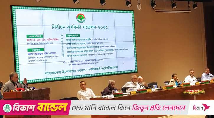 বাংলাদেশ ইলেকশন কমিশন অফিসার্স এসোসিয়েশন আয়োজিত নির্বাচন কর্মকর্তা সম্মেলন-২০২৫ অনুষ্ঠানে সভাপতিত্ব করেন আয়োজক সংগঠনের আহ্বায়ক মোহাম্মদ মনির হোসেন। এ সময় নির্বাচন কমিশন সচিব ও অন্যান্য নির্বাচন কমিশনার এবং ইসি কর্মকর্তারা উপস্থিত ছিলেন।