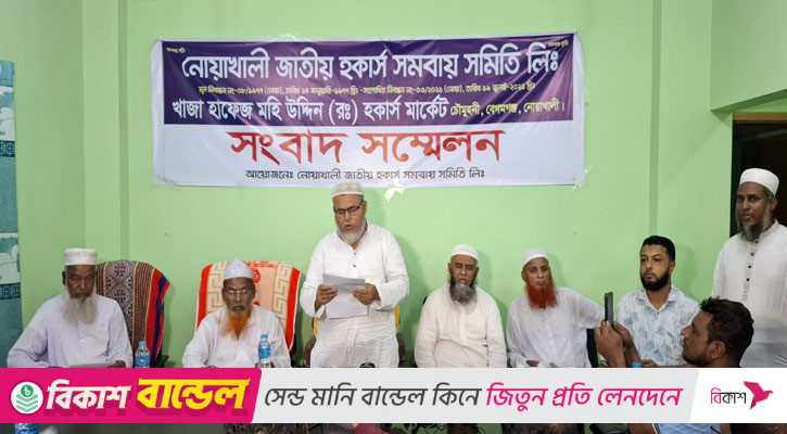 বুধবার (৮ অক্টোবর) দুপুরে উপজেলার চৌমুহনী বাজারে সমিতির নিজস্ব কার্যালয়ে আয়োজিত সংবাদ সম্মেলনে এ অভিযোগ করেন নোয়াখালী জাতীয় হকার্স সমবায় সমিতি লিমিটেডের ভাইস চেয়ারম্যান হাজী মো. ইউছুফ।
