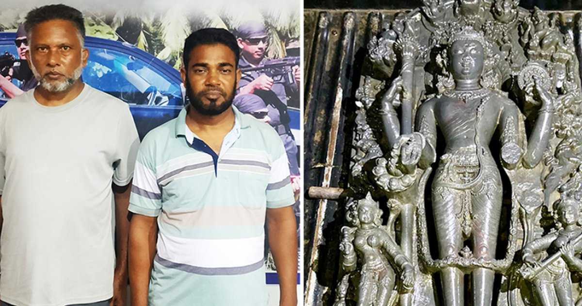 র্যাব সূত্র ও এলাকাবাসী জানান, প্রায় এক বছর আগে বগুড়ার শেরপুর উপজেলার কুসুম্বি ইউনিয়নের দক্ষিণ আমইন গ্রামের সোনালি পুকুরটি সংস্কার করা হয়। এ সময় আসামিরা পুকুরে ১৯০ কেজি ওজনের মূল্যবান কষ্টিপাথরের মূর্তিটি পান। মূর্তিটি দৈর্ঘ্যে ৫৭ ইঞ্চি ও প্রস্থে ২৪ ইঞ্চি। যার বাজারমূল্য প্রায় দুই কোটি টাকা। পরবর্তীতে পুকুরের লিজগ্রহীতা মূর্তিটি বিক্রির জন্য বিভিন্ন ক্রেতাকে দেখান।