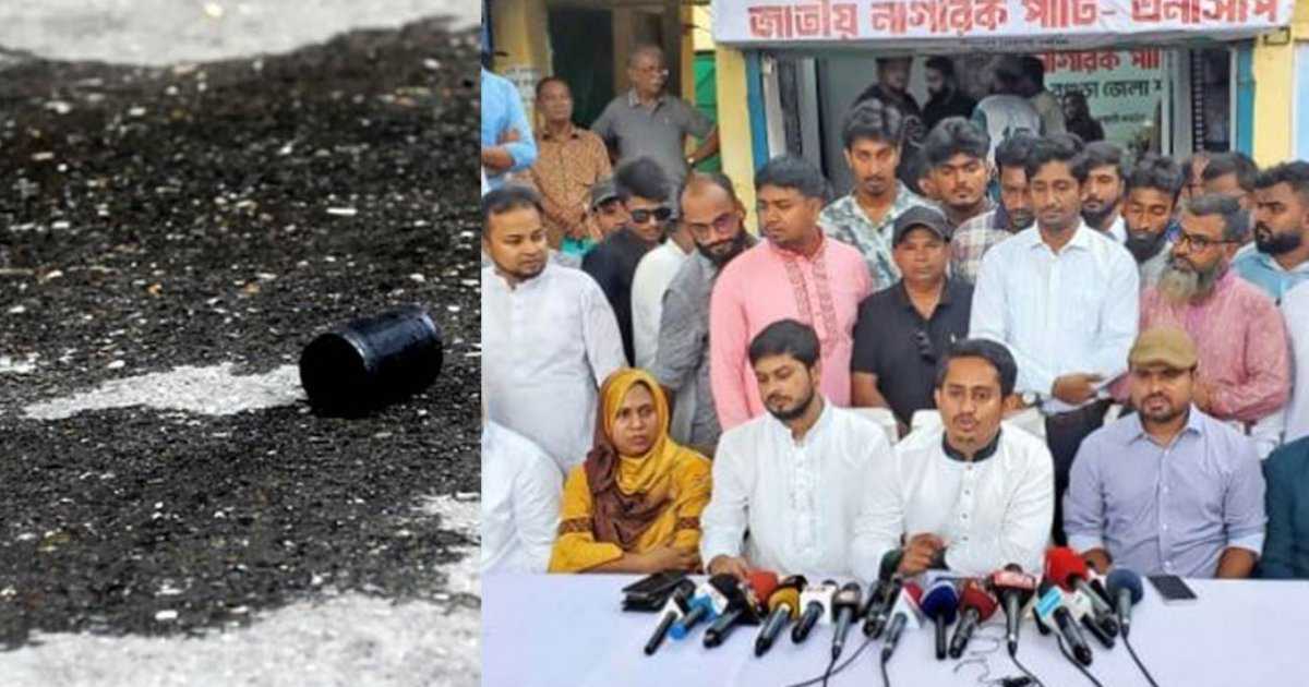এনসিপির বগুড়া জেলা কমিটির সমন্বয়কারী দলের সদস্য শওকত ইমরান সাংবাদিকদের বলেন, জেলা পরিষদ মিলনায়তনে আয়োজিত সমন্বয় সভায় এনসিপির উত্তরাঞ্চলের মুখ্য সংগঠক সারজিস আলম বক্তব্য দেওয়ার আগ মুহূর্তে বাইরে পরপর তিনটি ককটেল হামলা করা হয়। এর মধ্যে দুটি ককটেল বিস্ফোরিত হয়েছে। সমন্বয় সভা ভন্ডুল করতেই এই ককটেল হামলা হয়েছে। এই হামলার জন্য ফ্যাসিস্ট আওয়ামী লীগ এবং তাদের দোসররা দায়ী।