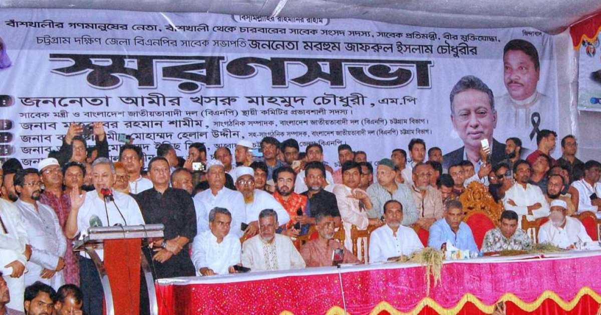 দক্ষিণ জেলা বিএনপির আহ্বায়ক কমিটির সদস্য ও মরহুম জাফরুল ইসলাম চৌধুরীর সন্তান জহিরুল ইসলাম চৌধুরী আলমগীরের সভাপতিত্বে অনুষ্ঠিত স্মরণ সভায় প্রধান বক্তার বক্তব্য দেন বিএনপির কেন্দ্রীয় কমিটির সাংগঠনিক সম্পাদক মাহবুবের রহমান শামীম। বিশেষ অতিথির বক্তব্য দেন চট্টগ্রাম দক্ষিণ জেলা বিএনপির আহ্বায়ক আলহাজ ইদ্রিস মিয়া, দক্ষিণ জেলা বিএনপির যুগ্ম আহ্বায়ক, বাঁশখালী আসনের বিএনপির প্রার্থী মরহুম জাফরুল ইসলাম চৌধুরীর সন্তান মিশকাতুল ইসলাম চৌধুরী পাপ্পা, দক্ষিণ জেলা বিএনপির সাবেক সিনিয়র যুগ্ম আহ্বায়ক পটিয়া আসনে বিএনপির প্রার্থী এনামুল হক এনাম।