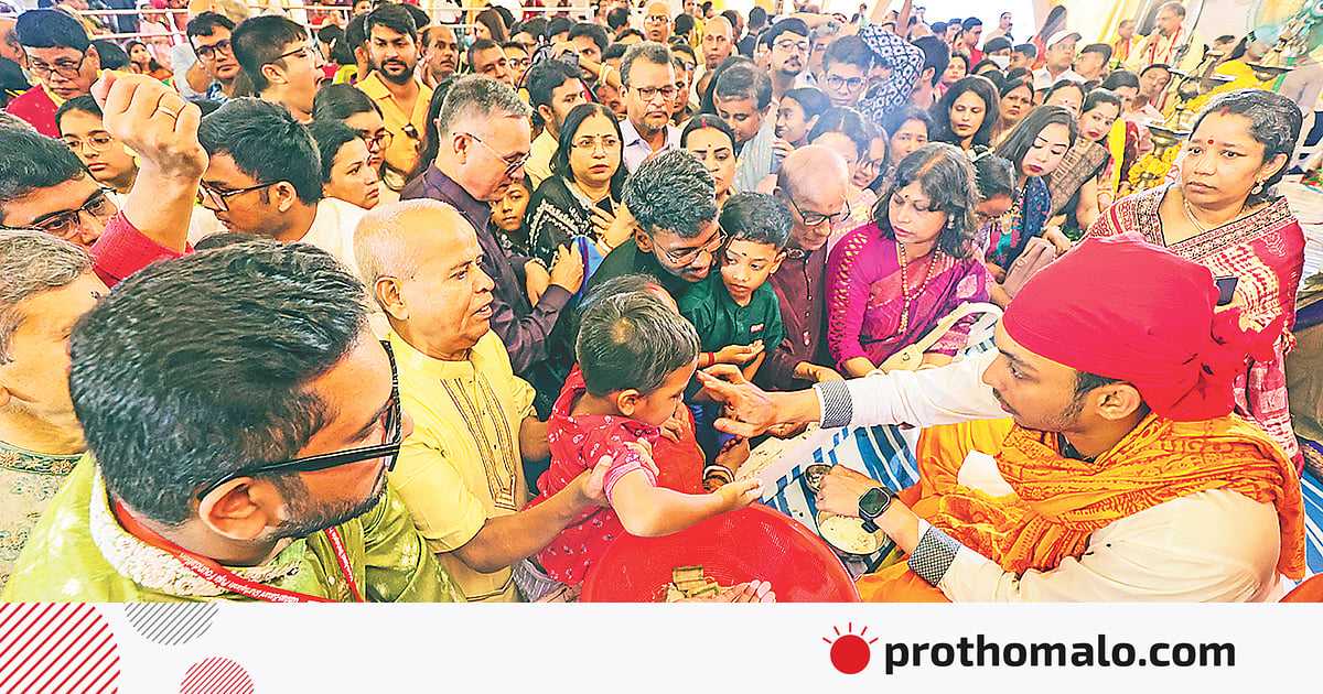 মানিকগঞ্জের বেতিলা থেকে যাদব চন্দ্র ঘোষ, স্ত্রী অর্চনা রানি ঘোষকে নিয়ে বনানী মণ্ডপে এসেছিলেন অঞ্জলি দিতে। তাঁরা প্রথম আলোকে বললেন, বনানীর পূজার আয়োজন অনেক বড়। জাঁকজমক, সাজসজ্জাও বর্ণাঢ্য। তাঁদের গ্রামেও পূজা হচ্ছে। তবে গ্রামের পূজার সঙ্গে বনানীর আয়োজনের তুলনা চলে না। প্রতিবছরই তাঁরা নবমীতে এখানে অঞ্জলি দিতে আসেন।