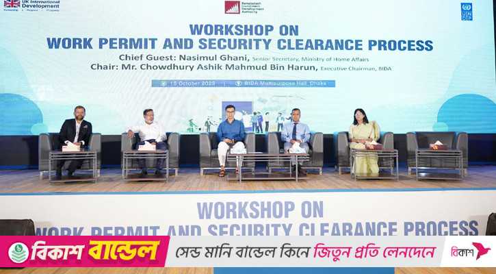 বুধবার (১৫ অক্টোবর) বাংলাদেশ বিনিয়োগ উন্নয়ন কর্তৃপক্ষ (বিডা), স্বরাষ্ট্র মন্ত্রণালয় এবং জাতিসংঘ উন্নয়ন কর্মসূচি (ইউএনডিপি)-এর সহযোগিতায় “বাংলাদেশে বিদেশি নাগরিক ও বিনিয়োগকারীদের ওয়ার্ক পারমিট ও সিকিউরিটি ক্লিয়ারেন্স প্রক্রিয়া” শীর্ষক এক পরামর্শ সভায় এ পরামর্শ দেন বিশেষজ্ঞরা।