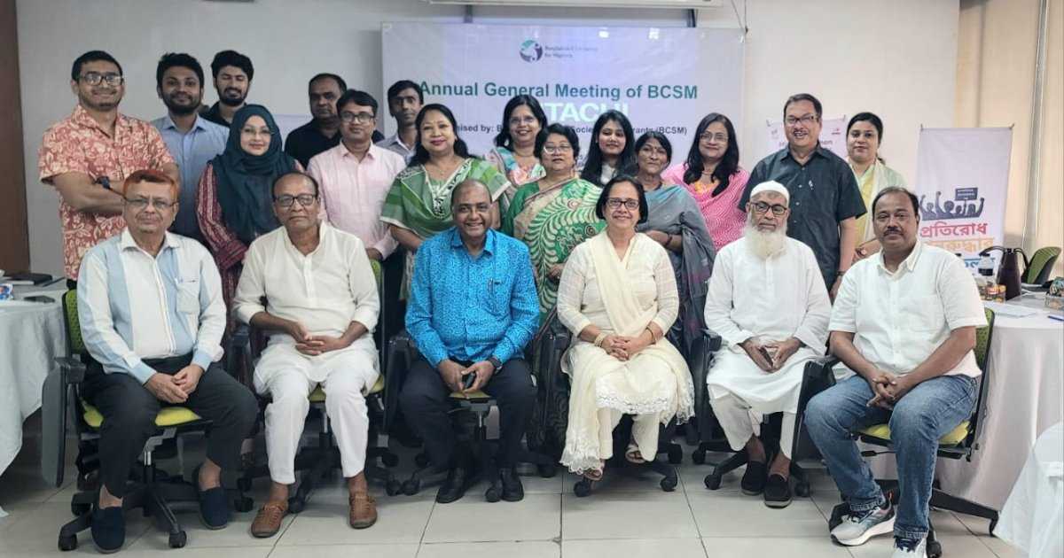 অভিবাসন খাতে সুশীল সমাজের প্রতিনিধিদের জোট বাংলাদেশ সিভিল সোসাইটি ফর মাইগ্র্যান্টস (বিসিএসএম) তৃতীয় বার্ষিক সাধারণ সভা (এজিএম) অনুষ্ঠিত হয়েছে। শনিবার (২৫ অক্টোবর) এজিএমের মাধ্যমে সংবিধান অনুসারে একটি স্বচ্ছ এবং অংশগ্রহণমূলক প্রক্রিয়ার মাধ্যমে ৯ সদস্যের কমিটি নির্বাচিত করা হয়েছে। এতে চেয়ার পদে ড. তাসনিম সিদ্দিকী (রামরু), কো-চেয়ার পদে সৈয়দ সাইফুল হক (ওয়ারবি ডেভেলপমেন্ট ফাউন্ডেশন) এবং কোষাধ্যক্ষ পদে রঞ্জিত চন্দ্র দাস (বাসটোব) নির্বাচিত হয়েছেন। আর রামরু হচ্ছে বিসিএসএমের সচিবালয়।