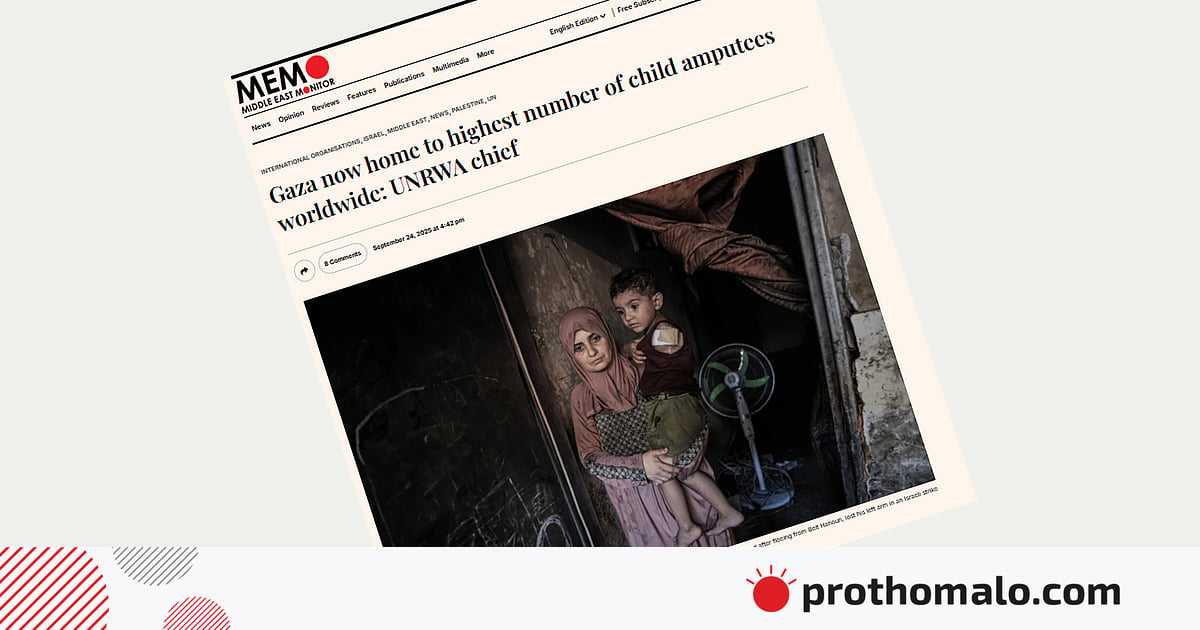 গাজায় ইসরায়েল যুদ্ধ শুরু করার পর থেকে এ উপত্যকা বিশ্বে এককভাবে জনসংখ্যাপ্রতি সবচেয়ে বেশি অঙ্গচ্ছেদ হওয়া শিশুর ঠিকানা হয়ে উঠেছে। ফিলিস্তিনি শরণার্থীবিষয়ক সংস্থা ইউএনআরডব্লিউএর প্রধানের বরাতে গতকাল বুধবার এ তথ্য জানিয়েছে সংবাদমাধ্যম আনাদোলু।