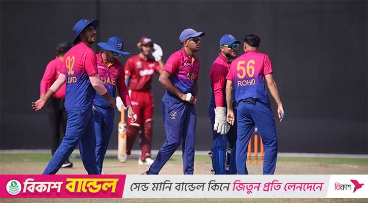 পরে ব্যাট হাতে আলিশান শারাফু ও অধিনায়ক মুহাম্মাদ ওয়াসিমের ব্যাটে ঝড় তোলেন আমিরাতের ব্যাটাররা। শারাফু ২৭ বলে ৪৬ এবং ওয়াসিম ২৬ বলে ৪২ রান করে দলকে ৪৭ বল হাতে রেখে জয়ের বন্দরে পৌঁছে দেন।