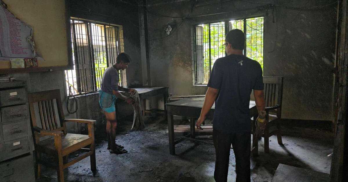 আগুনের ঘটনায় আসবাবপত্রসহ গুরুত্বপূর্ণ কাগজপত্র পুড়ে যায়।