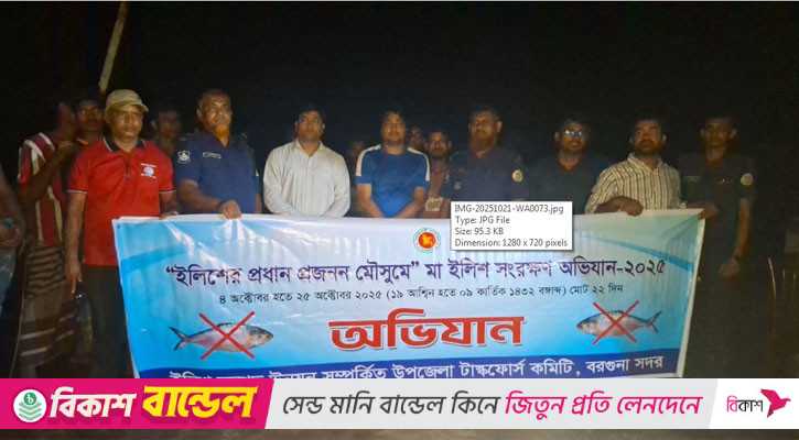 মঙ্গলবার (২১ অক্টোবর) বিকেল থেকে রাত ৯টা পর্যন্ত বরগুনা সদর উপজেলার নলটোনা এলাকার বিষখালী নদীতে এ অভিযান পরিচালনা করা হয়। অভিযান শেষে সদর উপজেলা নির্বাহী কর্মকর্তা (ইউএনও) মো. ইয়াছিন আরাফাত রানা ভ্রাম্যমাণ আদালত পরিচালনা করেন।