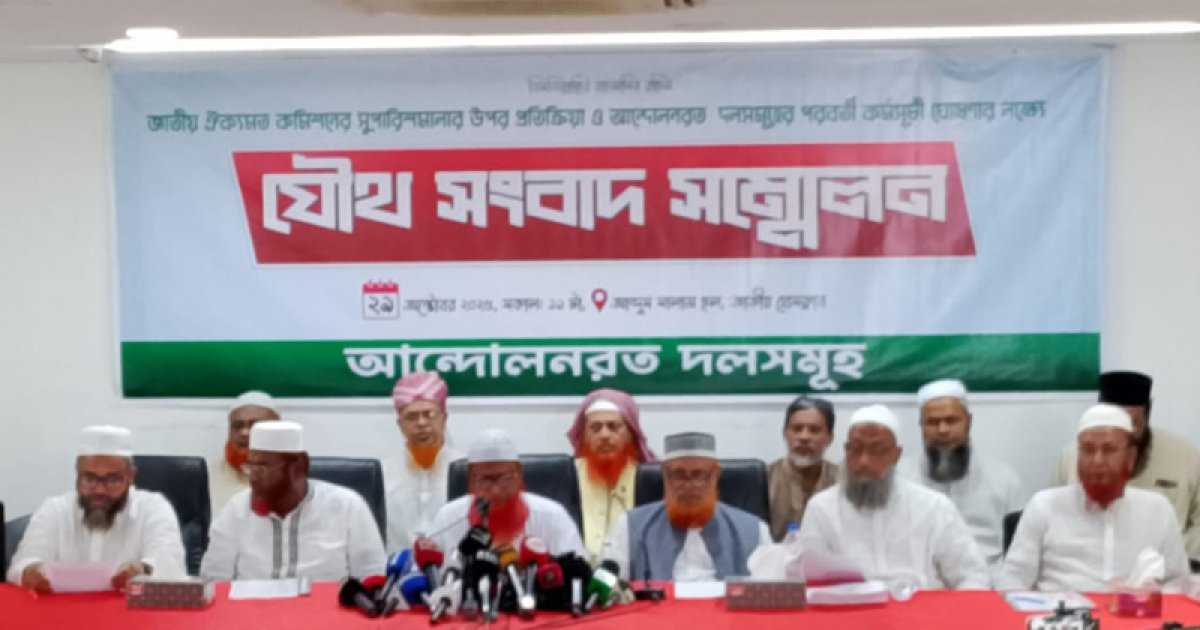 সংবাদ সম্মেলনে আন্দোলনরত রাজনৈতিক দলগুলোর নেতাদের মধ্যে ছিলেন– জামায়াতে ইসলামীর সেক্রেটারি জেনারেল অধ্যাপক মিয়া গোলাম পরওয়ার, ইসলামী আন্দোলন বাংলাদেশের মহাসচিব অধ্যক্ষ ইউনুছ আহমদ, খেলাফত মজলিসের মহাসচিব ড. আহমদ আবদুল কাদের, সিনিয়র নায়েবে আমির মাওলানা সাখাওয়াত হোসাইন, বাংলাদেশ খেলাফত মজলিস সিনিয়র নায়েবে আমির মাওলানা ইউসুফ আশরাফ, বাংলাদেশ নেজামে ইসলামী পার্টির মহাসচিব মাওলানা মুসা বিন ইজহার, বাংলাদেশ খেলাফত আন্দোলনের নায়েবে আমির মাওলানা মুজিবুর রহমান হামিদী, জাগপা মুখপাত্র ইঞ্জিনিয়ার রাশেদ প্রধান, বাংলাদেশ ডেভেলপমেন্ট পার্টির মহাসচিব নিজামুল হক নাঈম।