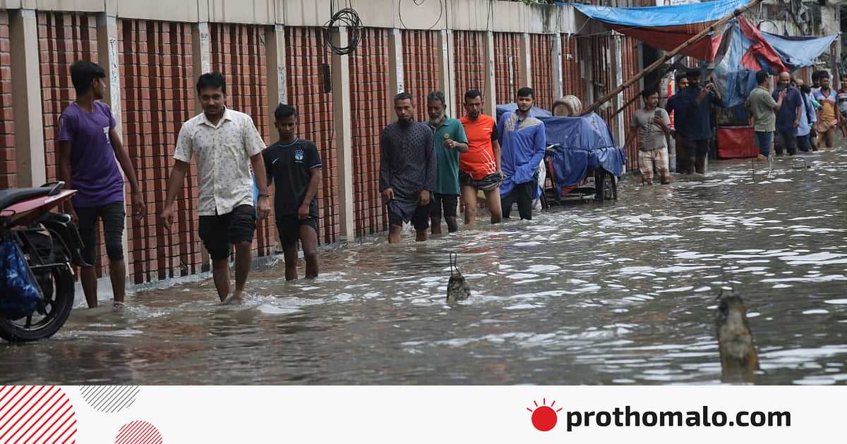রাজধানী ঢাকায় গতকাল মঙ্গলবার দিবাগত রাত ১২টা থেকে আজ বুধবার সকাল ৬টা পর্যন্ত ৬ ঘণ্টায় ১৩২ মিলিমিটার বৃষ্টি হয়েছে। এটি এই সময়ে দেশের সর্বোচ্চ বৃষ্টি। রাতভর টানা বৃষ্টিতে রাজধানীর কোথাও হাঁটুসমান পানি, কোথাও আবার রিকশা-বাস আটকে পড়েছে মাঝরাস্তায়। হেঁটে পানি পেরিয়ে নগরবাসীকে যেতে হচ্ছে গন্তব্যে। টানা বৃষ্টিতে ঢাকার সড়কগুলো রূপ নিয়েছে জলাবদ্ধতায় ভরা দুর্ভোগের শহরে।হকার্স মার্কেটের ভেতরে ঢুকে পড়েছে বৃষ্টির পানি। মেশিন দিয়ে সেচে সেই পানি বের করা হচ্ছে। নিউমার্কেট এলাকা। ছবি: জাহিদুল করিম