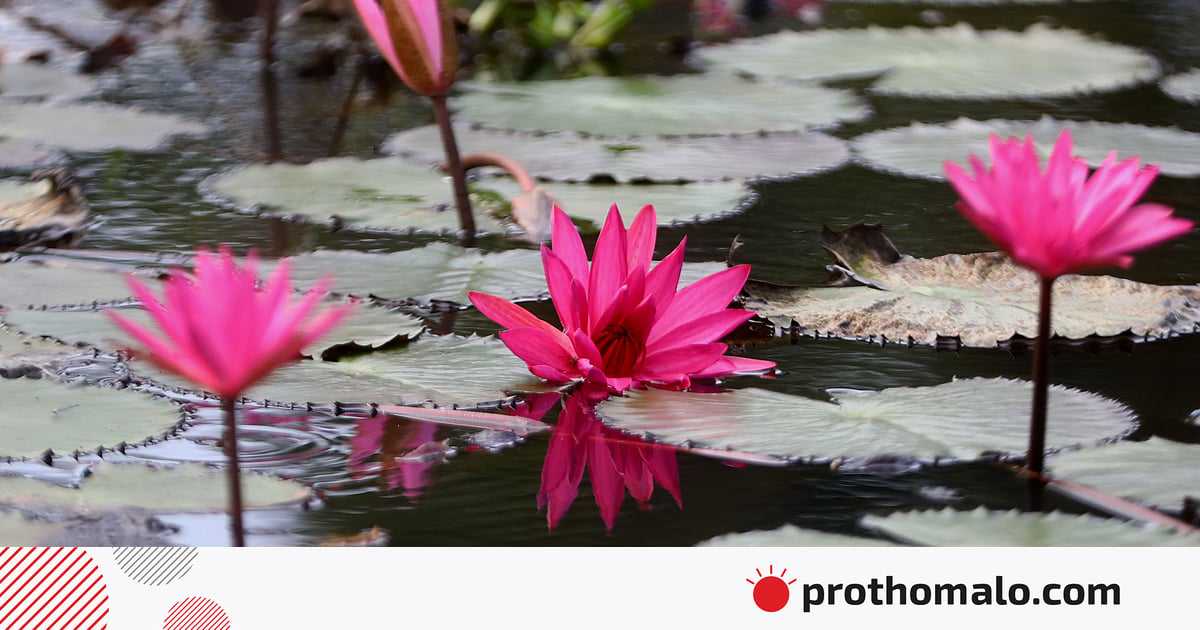 চারপাশে সারি সারি সবুজ চা–গাছ। মাঝে ছোট ছোট তিনটি পুকুর। পুকুরের পানিতে ফুটে আছে অজস্র লাল শাপলা। অবারিত সবুজের মাঝে লালের এ মিশেল পুরো চা–বাগানের সৌন্দর্য যেন বহুগুণ বাড়িয়ে তুলেছে। সিলেটের লাক্কাতুরা চা–বাগানের ভেতরে অপরূপ এ দৃশ্যের দেখা মেলে। ছবিগুলো সম্প্রতি তোলা।