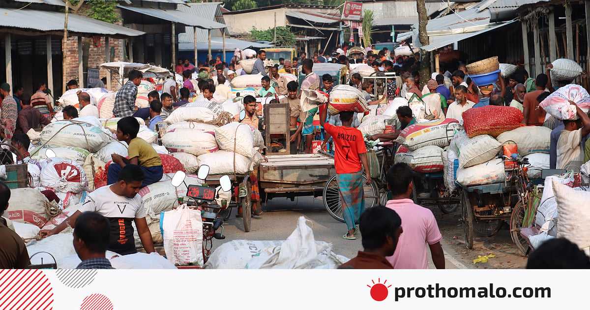 ফরিদপুর সদর উপজেলার কানাইপুর ইউনিয়নের নালার মোড়ের ত্রিমুখী সড়কের ওপর সপ্তাহের দুই দিন শুক্র ও মঙ্গলবার বসে পেঁয়াজের হাট। আশপাশের কৃষকেরা তাঁদের উৎপাদিত পেঁয়াজ নিয়ে জড়ো হন এই হাটে। ভোর পাঁচটা থেকে সকাল নয়টা পর্যন্ত চার ঘণ্টার এই হাট ক্রেতা-বিক্রেতায় হয়ে ওঠে জমজমাট। এক হাটেই প্রায় পাঁচ কোটি টাকার পেঁয়াজ বিক্রি হয়। চার ঘণ্টার পেঁয়াজের হাট নিয়ে এবারের ছবির গল্প: