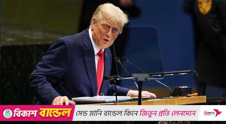 মঙ্গলবার (২৩ সেপ্টেম্বর) নিউইয়র্কে জাতিসংঘ সদর দপ্তরে দেওয়া ভাষণে ট্রাম্প বলেন, চীন ও ভারত রাশিয়ার তেল কিনে চলেছে। তারা যুদ্ধের মূল অর্থ জোগাচ্ছে।