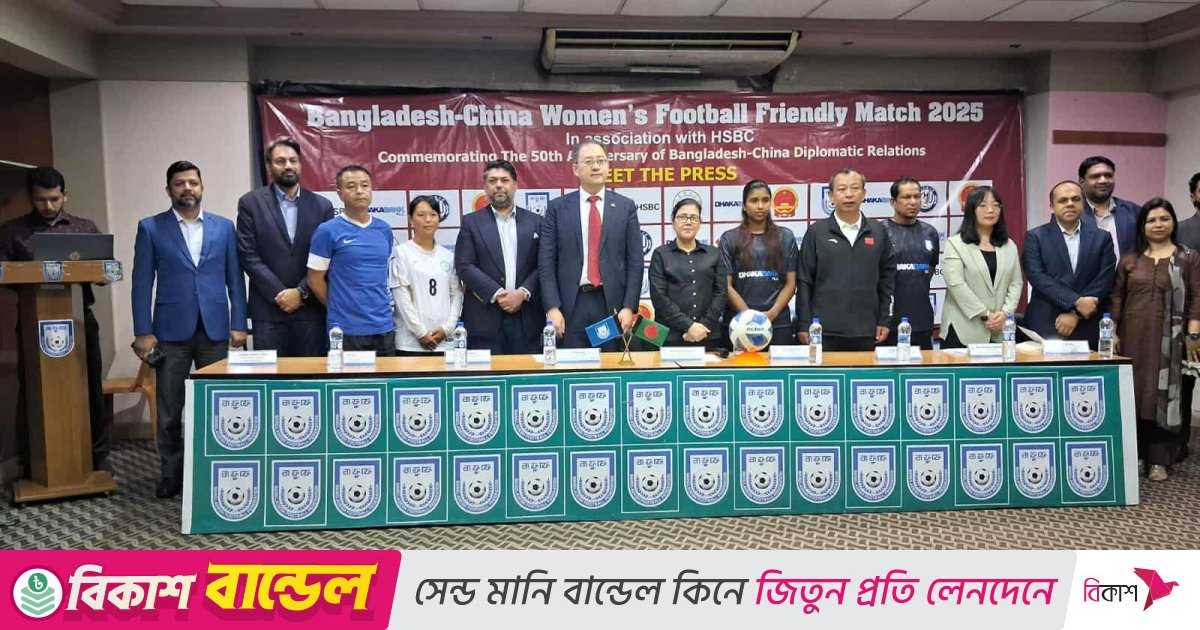 বাংলাদেশ ও চীনের মধ্যে বন্ধুত্বপূর্ণ কূটনৈতিক সম্পর্কের ৫০ বছর উদযাপন উপলক্ষে ঢাকায় হতে যাচ্ছে নারীদের প্রীতি ফুটবল ম্যাচ। শনিবার ঢাকার জাতীয় স্টেডিয়ামে মুখোমুখি হচ্ছে বাফুফের এলিট একাডেমি ও চায়না ইউনিভার্সিটি অব উইমেন্স ফুটবল দল। ম্যাচটি হবে বিকাল সাড়ে ৪ টায়। দর্শকদের খেলা দেখার জন্য টিকিট লাগবে না।