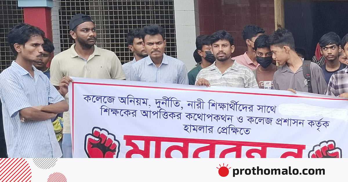 মানববন্ধনে বক্তারা ছাত্রীকে আপত্তিকর খুদে বার্তা পাঠানোর কথা উল্লেখ করে বলেন, ‘শিক্ষকের এমন অনৈতিক আচরণ কোনোভাবেই মেনে নেওয়া যায় না। ছাত্রীদের সঙ্গে খারাপ আচরণ করা ছাড়াও ওই শিক্ষকের বিরুদ্ধে অনিয়ম-দুর্নীতির অভিযোগ রয়েছে। তিনি কলেজের অধ্যক্ষের দায়িত্বে আছেন। ভর্তিসহ বিভিন্ন অজুহাতে শিক্ষার্থীদের কাছ থেকে অতিরিক্ত ফি নেওয়া হয়। এসবের প্রতিবাদ করতে গেলে গুন্ডা বাহিনী দিয়ে শিক্ষার্থীদের মারধর করেন ওই শিক্ষক। কলেজে শিক্ষার পরিবেশ ফিরিয়ে আনতে এই অধ্যক্ষকে দ্রুত বহিষ্কার করা উচিত।’