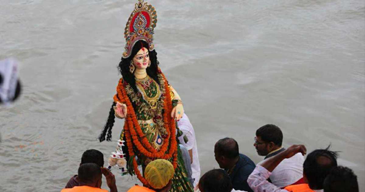 সনাতন ধর্মাবলম্বীদের সবচেয়ে বড় ধর্মীয় অনুষ্ঠান শারদীয় দুর্গোৎসবের বিজয়া দশমীতে চোখের জলে দেবী দুর্গাকে বিসর্জন দিয়েছেন ভক্তরা।