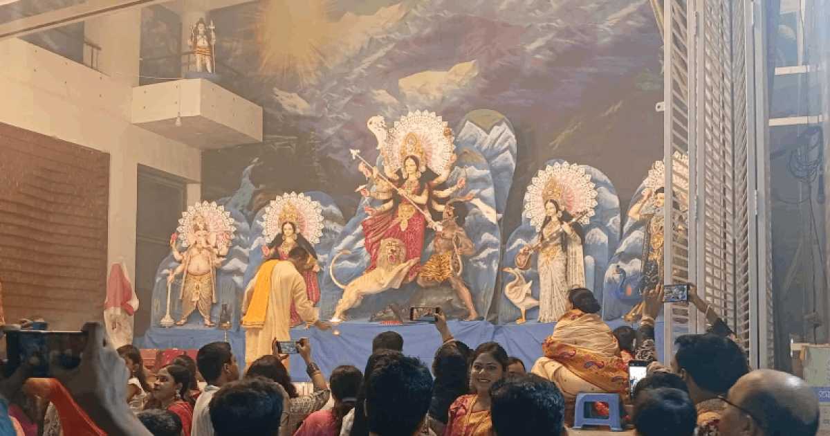 দেবী দুর্গা, লক্ষ্মী, সরস্বতী, গণেশ-কার্তিকসহ সব প্রতিমা রয়েছে এখানে। সকাল থেকে নানান বয়সী মানুষ প্রতিমা দেখতে আসছেন।