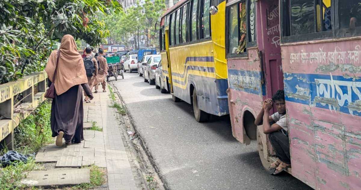 বেশিরভাগ বাসই পূর্ণ, কেউ জানালা দিয়ে ঢোকার চেষ্টা করছে, কেউ দরজায় ঝুলছে। বাতাসে গালাগাল ও ধোঁয়ার মিশ্রণ।