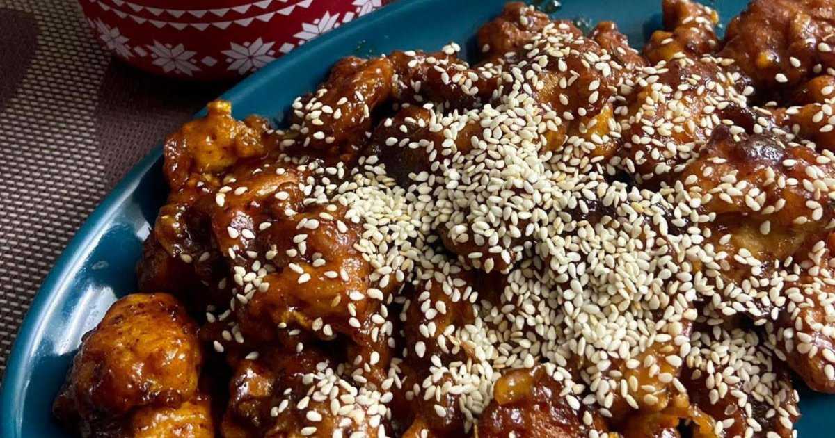 ননস্টিক প্যানে হালকা তেল দিয়ে চিকেন সোনালি করে ভাজুন। বা ওভেন-বেক ২০০° তাপমাত্রায় ২৫–৩০ মিনিট বেক করুন। চিকেনের উপর গ্লেজ ব্রাশ করুন এবং ৫ মিনিট আবার বেক করুন বা প্যানে কোট হতে দিন। তিল ছিটিয়ে গরম গরম পরিবেশন করুন।