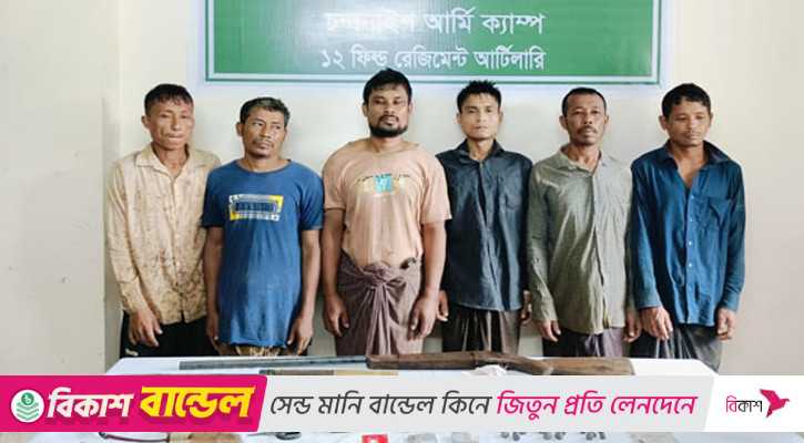 আটককৃতরা হলো- বান্দরবানের ডলুপাড়া এলাকার লুকুম (৩৬), সুলাই মারমা (৩০), মং সানু মারমা (৩৮), মনুচিং মারমা (৪০), চাইসাও (৪০) ও চাচিংপ্রু মারমা (৩৮)।