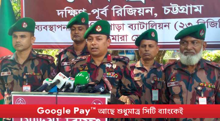 বৃহস্পতিবার (২৩ অক্টোবর) খাগড়াছড়ির যামিনী পাড়া ২৩ বিজিবি ব্যাটালিয়ন সদর দপ্তরে আয়োজিত সংবাদ সম্মেলনে এসব তথ্য জানান ব্যাটালিয়নের অধিনায়ক লেফটেন্যান্ট কর্নেল খালিদ ইবনে হোসেন।