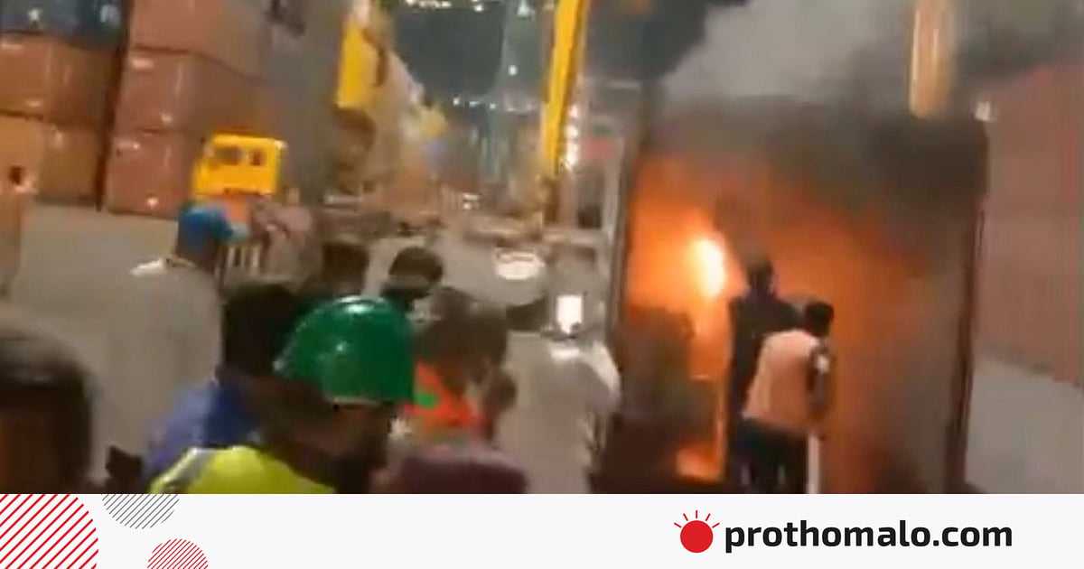 বন্দর ও কাস্টমস সূত্রে জানা যায়, গত ১৯ সেপ্টেম্বর এম ইয়োকোহামা জাহাজে সিঙ্গাপুর থেকে কনটেইনারটি বন্দরে আনা হয়। ২৪ সেপ্টেম্বর কনটেইনারটি বন্দর চত্বরে রাখা হয়। গতকাল বুধবার রাত আটটার দিকে কনটেইনারটি থেকে ধোঁয়া বের হতে থাকে। তাৎক্ষণিকভাবে বন্দরের ফায়ার সার্ভিসসহ নিরাপত্তাকর্মীরা এসে আগুন নিয়ন্ত্রণে আনেন।
