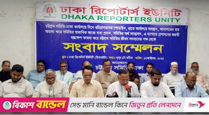 রোববার (১২ অক্টোবর) ঢাকা রিপোর্টার্স ইউনিটিতে এক জরুরি সংবাদ সম্মেলনের মাধ্যমে এ অভিযোগ করেন সমিতির জীবন সদস্যরা। এসময় উপস্থিত ছিলেন চট্টগ্রাম সমিতির ঢাকা কার্যালয়ের আরিফ উদ্দিন, প্রকৌশলী জয়নুল আবেদীন প্রমুখ।