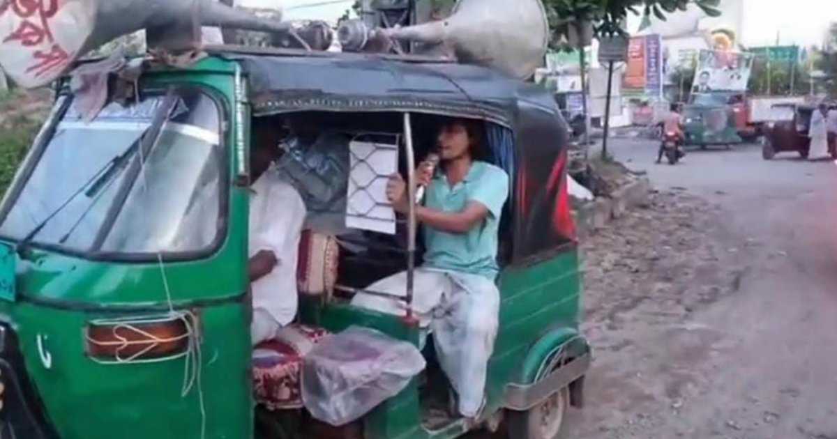 ১ মিনিট ১৭ সেকেন্ডের ভিডিওতে দেখা যায়, লুঙ্গি ও জার্সি পরা এক যুবক সিএনজিচালিত অটোরিকশায় বসে লিখিত ঘোষণা পড়ছেন।