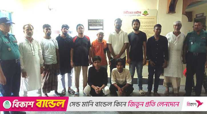 খবর পেয়ে পুলিশ অভিযান চালিয়ে ১১ জনকে গ্রেপ্তার করেছে। গ্রেপ্তারকৃতরা হলেন-মো.ইমরানুল হক রোমান (৪৩), মো.আনোয়ার হোসেন (৩৮), মো.মিজানুর রহমান রিয়াজ (৩২), আবু তৈয়ব রাসেল (৪২), শওকত আলী রনি (৪৮), আব্দুল্লাহ হোসেন রাব্বি (১৮), সাজ্জাদ (১৮), সাব্বির হোসেন শাওন (৩০), হাছান মুরাদ চৌধুরী রিমন (২৯), মো.সাইদুল ইসলাম (২৮) ও হাজী মো.নুরুল হুদা (৫৭)।