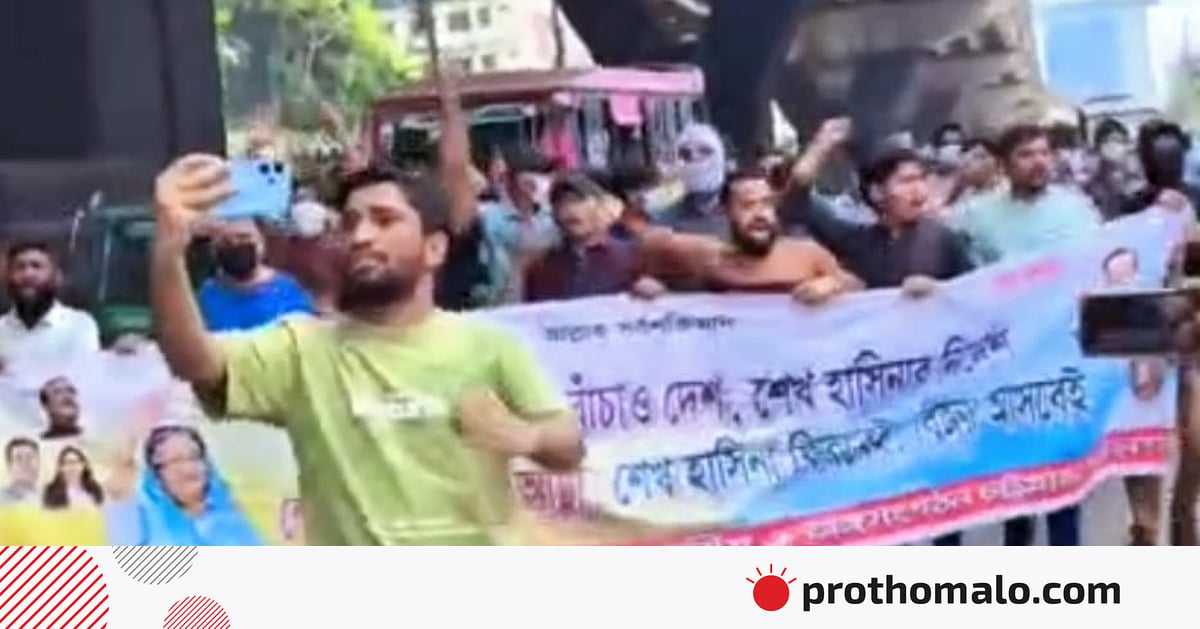 ঘটনার এক প্রত্যক্ষদর্শী প্রথম আলোকে বলেন, নগরের এমএম আলী রোডের মুখে জড়ো হয়ে সেখান থেকে বিক্ষোভ মিছিল বের করেন ২০ থেকে ২৫ জন। তাঁদের হাতে একটি ব্যানার ছিল। সেখানে লেখা, ‘শেখ হাসিনা ফিরবেই, বিজয় আসবেই।’ ব্যানারের নিচে আওয়ামী লীগ, যুবলীগ ও ছাত্রলীগের নাম লেখা ছিল। মিছিলটি পুলিশ কমিশনারের কার্যালয়ে পেরিয়ে দামপাড়া বাসস্ট্যান্ডে পৌঁছালে একটি পুলিশের গাড়ি দেখে ছত্রভঙ্গ হয়ে যায়। ফেসবুকে ছড়িয়ে পড়া ভিডিওতে দেখা যায়, ব্যানার নিয়ে স্লোগান দিয়ে মিছিল করছেন ২০ থেকে ২৫ জন।