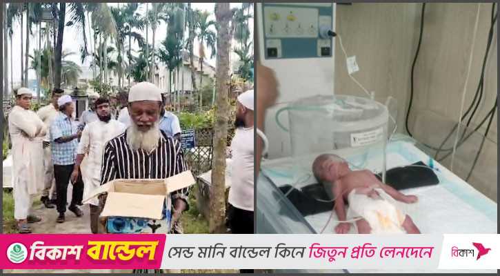 পৌর কবরস্থানের কবর খোদক শাহজাহান জানান, দুপুরে ৩০ থেকে ৩৫ বছর বয়সী অজ্ঞাত এক ব্যক্তি একটি কার্টনে শিশুটিকে নিয়ে আসেন। শিশুটি মৃত বলে দাবি করে দ্রুত কবর দিতে বলেন তিনি। কিন্তু দাফনের আগে আযান দেওয়া হলে নবজাতক নড়ে ওঠে। হাসপাতালের এইচআর এডমিন কামরুল ইসলাম জুগলু জানান, স্থানীয় গণমাধ্যমকর্মীরাই নবজাতকটিকে হাসপাতালে নিয়ে আসেন। ছেলে নবজাতকটিকে তাৎক্ষণিক এনআইসিইউতে রেখে চিকিৎসা শুরু করা হয়। বর্তমানে হাসপাতাল মালিক সমিতির সাধারণ সম্পাদক জিএম শাহিন শিশুটির দায়িত্ব নিয়েছেন। ফেমাস স্পেশালাইজড হসপিটাল এন্ড ট্রমা সেন্টারের সিনিয়র মেডিকেল অফিসার (এনআইসিইউ) ডা. ছোটন মিয়াজী বলেন, “শিশুটির ওজন মাত্র ৮০০ গ্রাম এবং আজই জন্ম হয়েছে। প্রথমে অক্সিজেন লেভেল কম ছিল। এখন সর্বোচ্চ চিকিৎসা সেবা দেয়া হচ্ছে। ” আরএ
